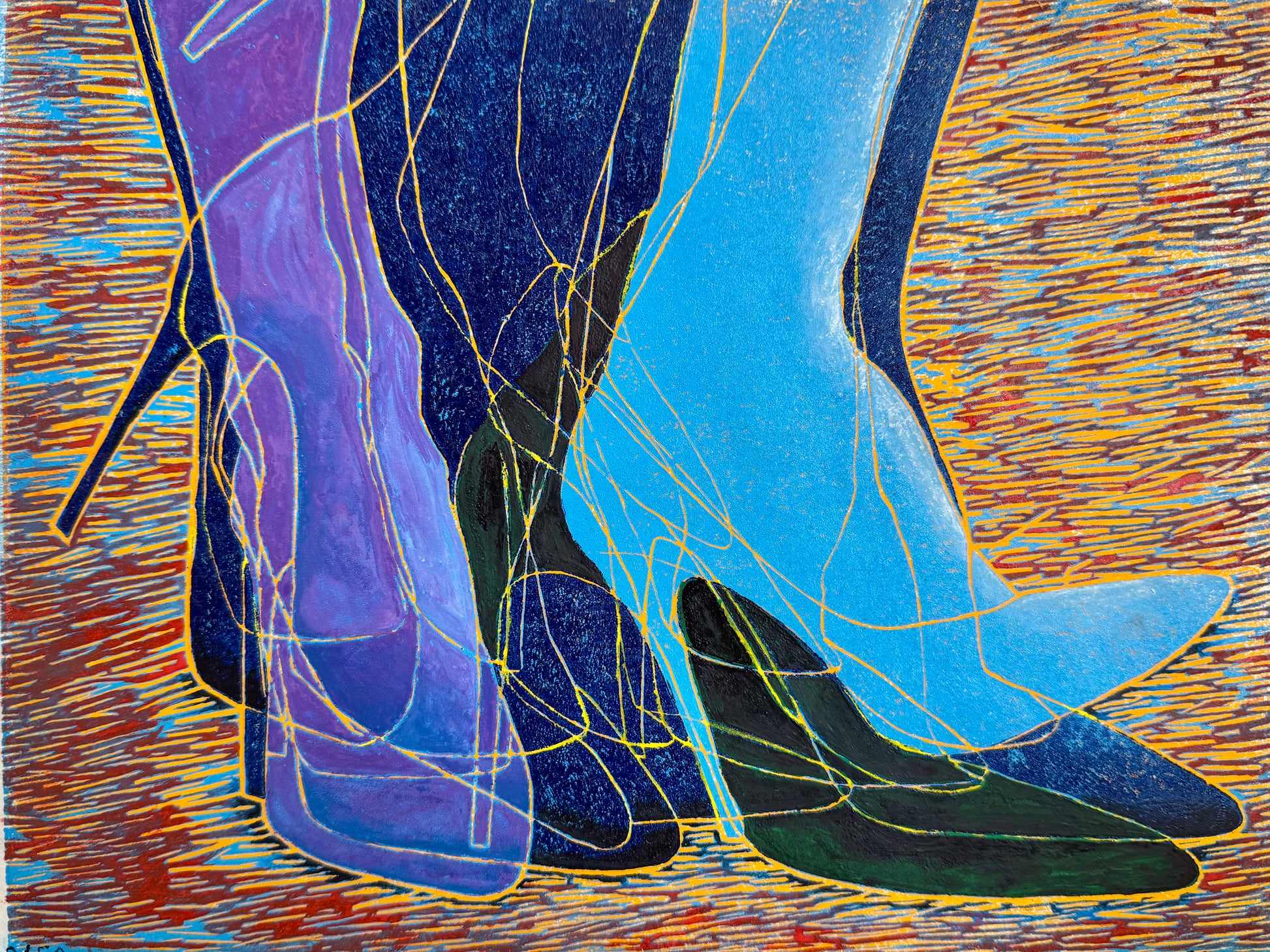 Hohenschuh is German for High Shoe. I have grown to love my unusual last name, which wasn't always the case (I had trouble spelling it when I was young, and others had trouble pronouncing it). When we had to do a book report on our heritage, I learned of its meaning. Years later, the shoe prints came into being inspired by this conundrum of a name.