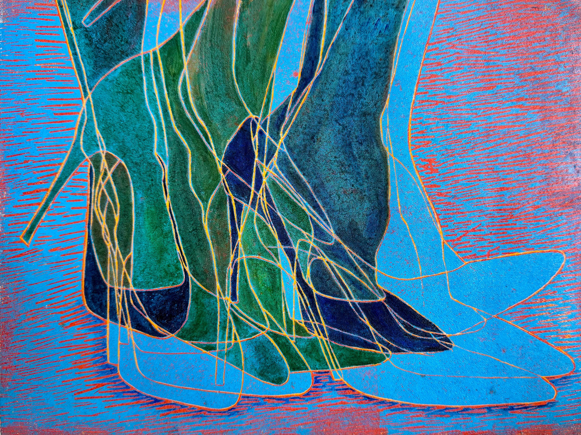 Hohenschuh is German for High Shoe. I have grown to love my unusual last name, which wasn't always the case (I had trouble spelling it when I was young, and others had trouble pronouncing it). When we had to do a book report on our heritage, I learned of its meaning. Years later, the shoe prints came into being inspired by this conundrum of a name.